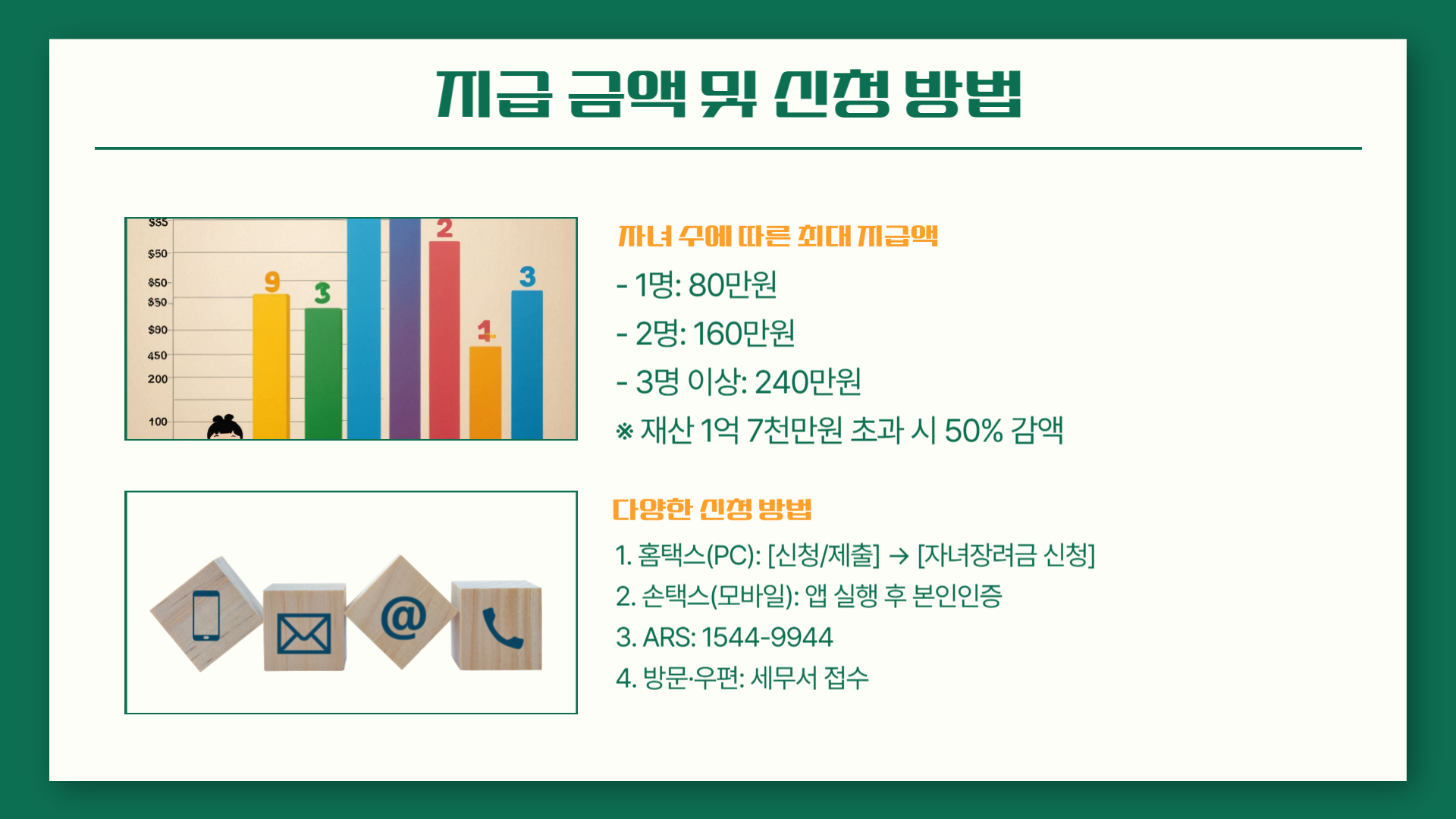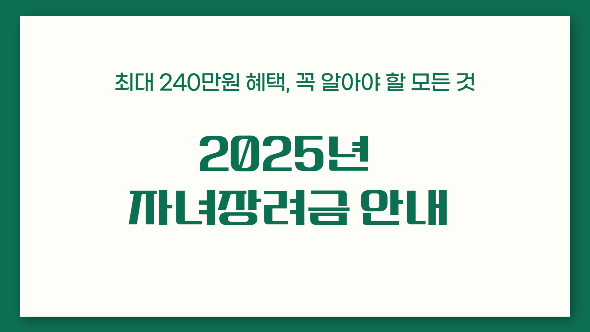 2025년 자녀장려금은 정해진 조건을 만족하는 가구에게 최대 240만 원까지 현금으로 지급하는 국가 정책입니다.